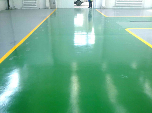 5.環(huán)氧地坪漆面層施工:環(huán)氧地坪漆彩漆與環(huán)氧地坪漆固化劑混合均勻后,用抹子、刷子、滾涂或噴涂等方法使找平面層平整均勻。環(huán)氧地坪漆采用一次涂裝工藝。無論面積有多大,都沒有連接接頭,而且是無塵材料,具有附著力強(qiáng)、耐磨、硬度強(qiáng)等特點(diǎn)。