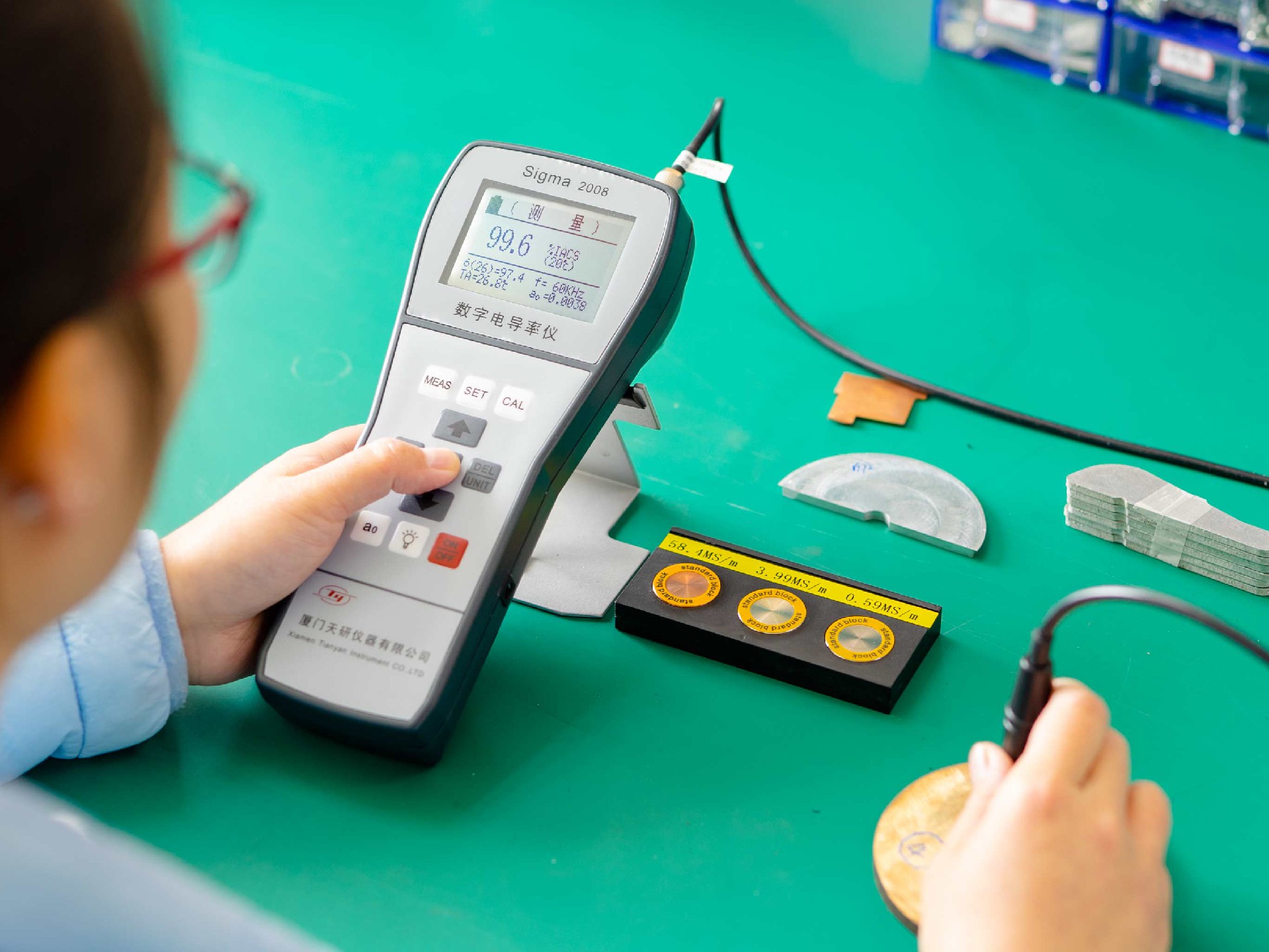 每個型號儀器都具備有三種測量參數(shù),即電導率MS/m、導電率%IACS、電阻率Ω·mm2/m,一鍵切換無需人工換算,使用極其方便。